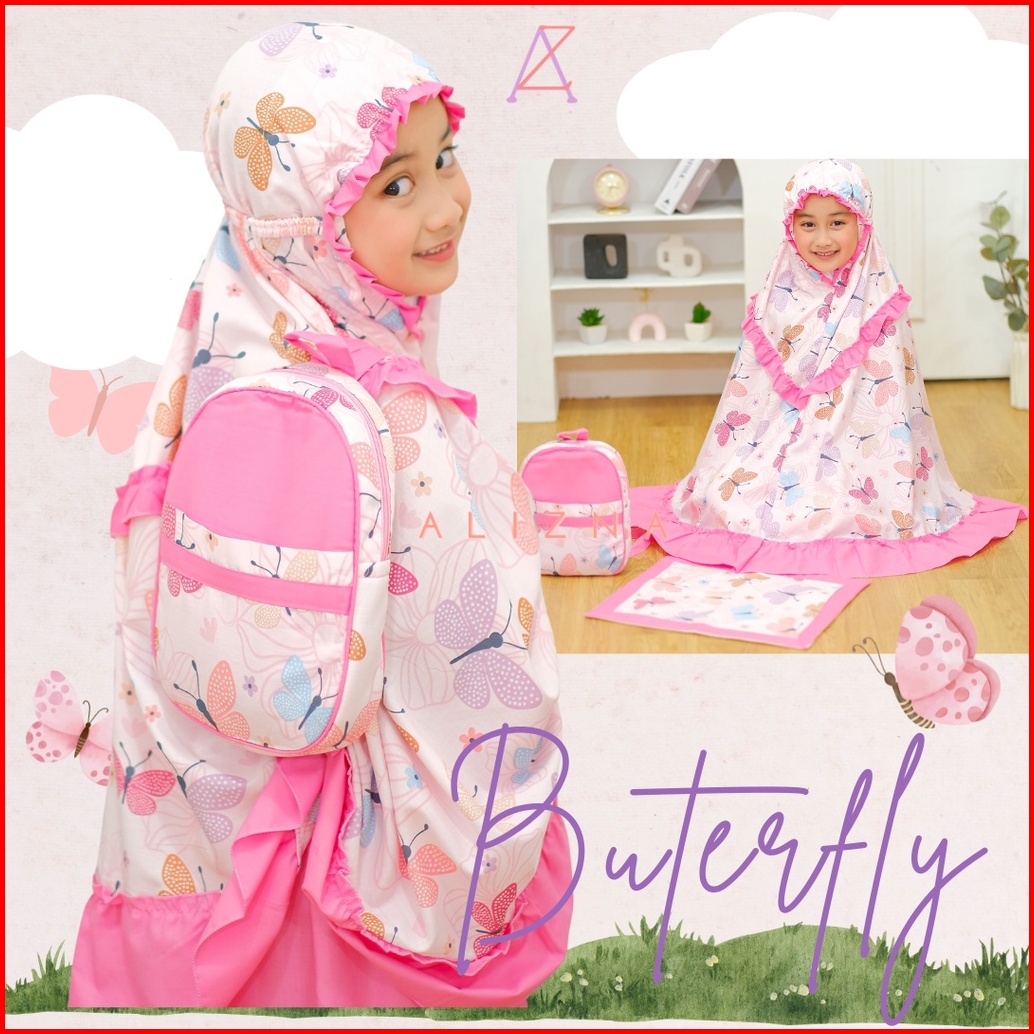 Mukena Anak 3 In 1 Karakter Butterfly Free Sajadah Muka
