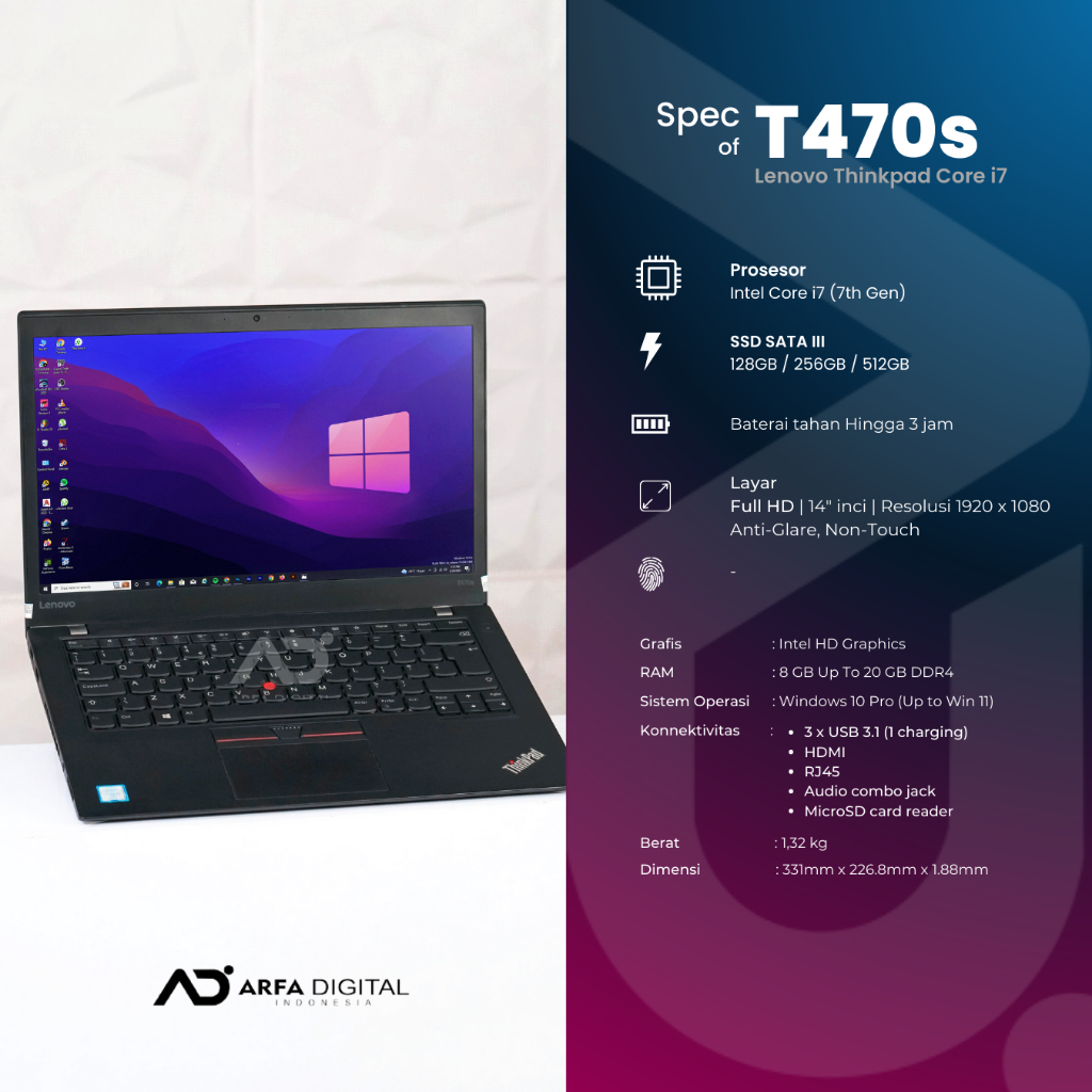 Laptop Lenovo ThinkPad T470s Core i7 Gen 7 RAM 8GB SSD 512 GB 14 inch Win 10