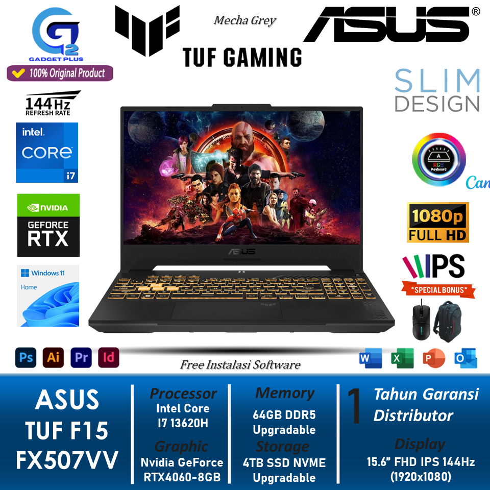 Laptop Gaming ASUS TUF F15 RTX4060 FX507VV i7 13620H 32GB DDR5 2TB SSD FHD IPS 144Hz RGB Win11Home