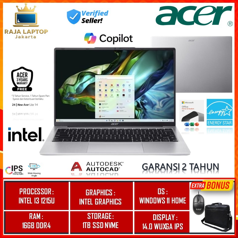 LAPTOP SLIM TERBARU ACER ASPIRE GO INTEL CORE I3 N305 RAM 16GB SSD 1TB 14.0 WUXGA IPS WIN 11