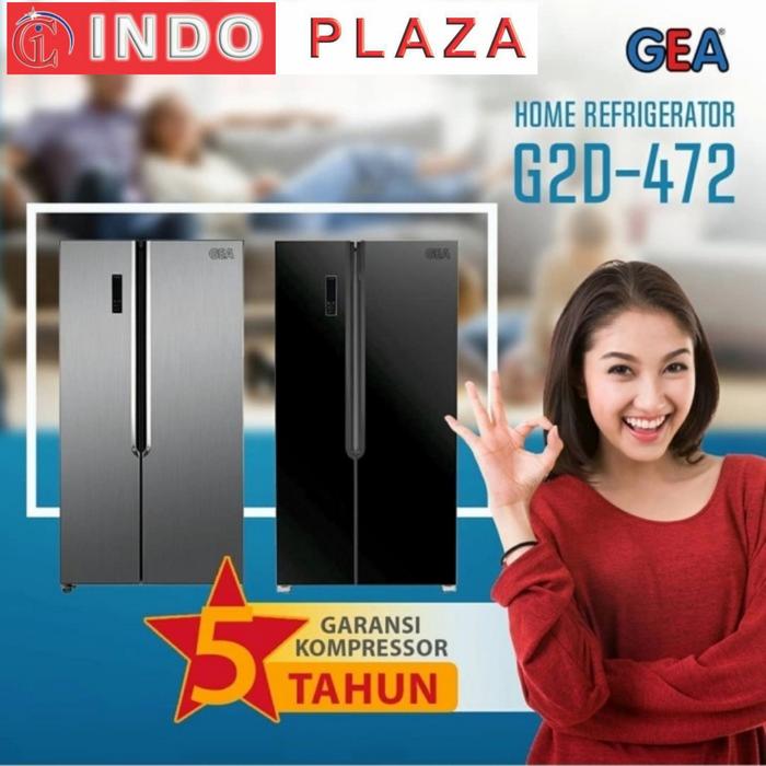 [PROMO] KULKAS SIDE BY SIDE GEA G2D472 INOX SILVERBLACK GLASSABUABU