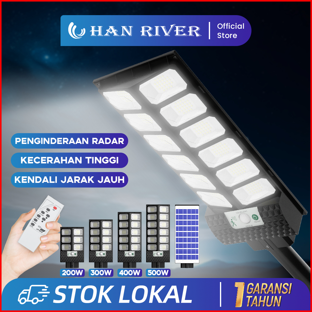 Han River Lampu Jalan Tenaga Surya 500w400w300w200w Ip67 Tahan Air Induksi Radar Lampu Taman Solar