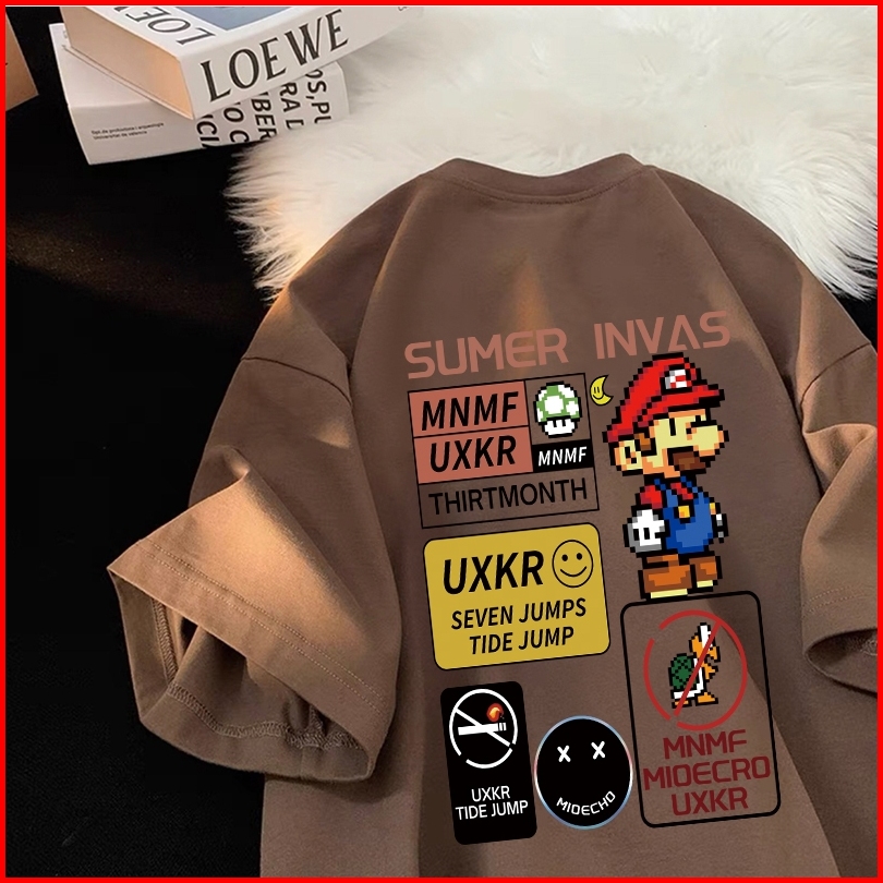 Forteid T-shirt Lengan Pendek Baju Kaos Oversize Wanita Baju Korean Style Baju Atasan Wanita Terbaru Super Mario Cotton