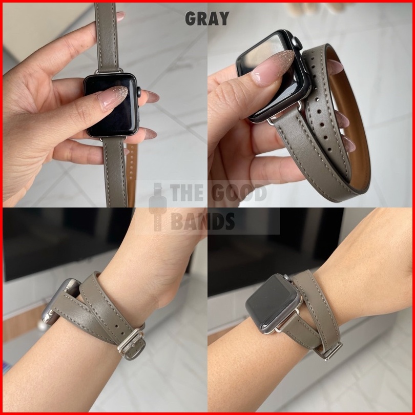 Strap Apple Watch Double Tour Leather Kulit Series Ultra 11 10 9 8 7 Se 6 5 4 3 2 1 49mm 46mm 45mm 44mm 42mm 41mm 40mm 3