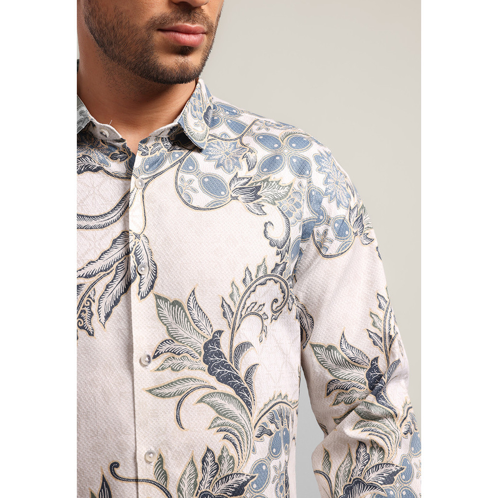 MOC - Kemeja Batik Pria Lengan Panjang Balereng - White