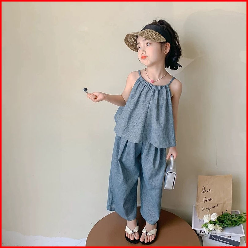 Balale - Setelan Liburan Anak Perempuan Atasan Tanktop Celana Longgar 2-10 Tahun - Lucu Nyaman
