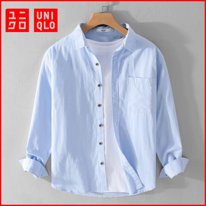 Kemeja Polos Pria Uniqlo Lengan Panjang Kemeja Pria Casual Premium Slim-fit