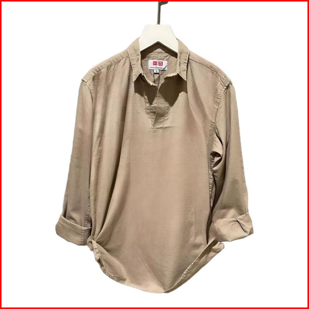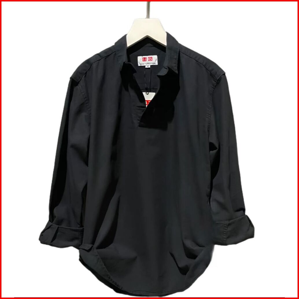 Kemeja Korean Style Pria Slimfit Minimalis Kemeja Polos Pria Krah Vneck