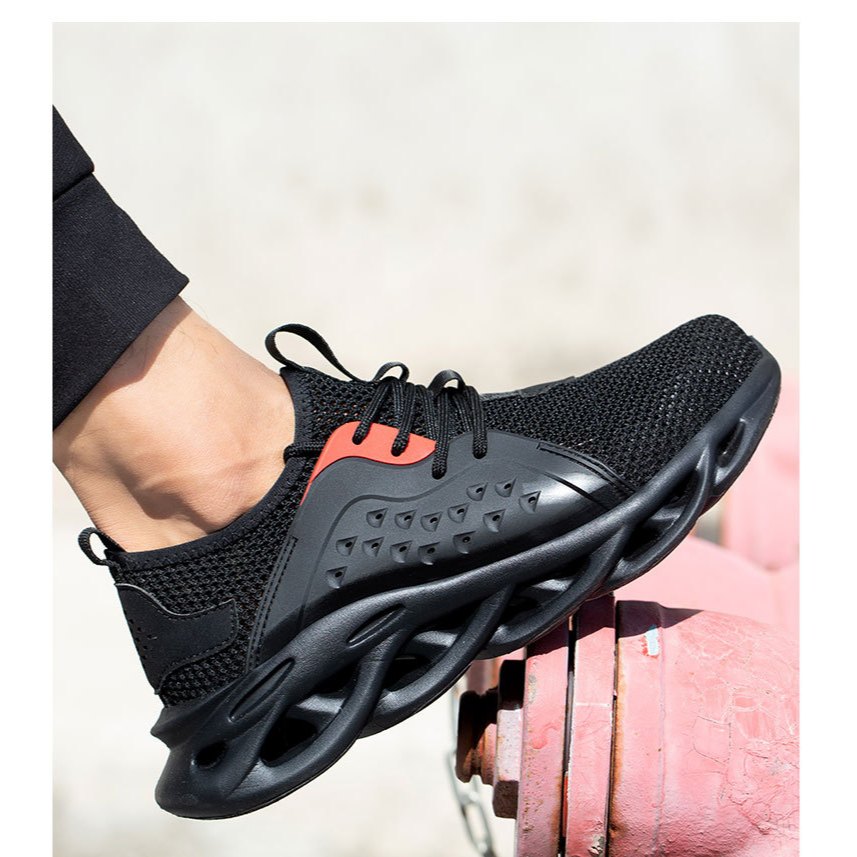 Sepatu Safety Sneakers Sport Ujung Besi Warna Hitam