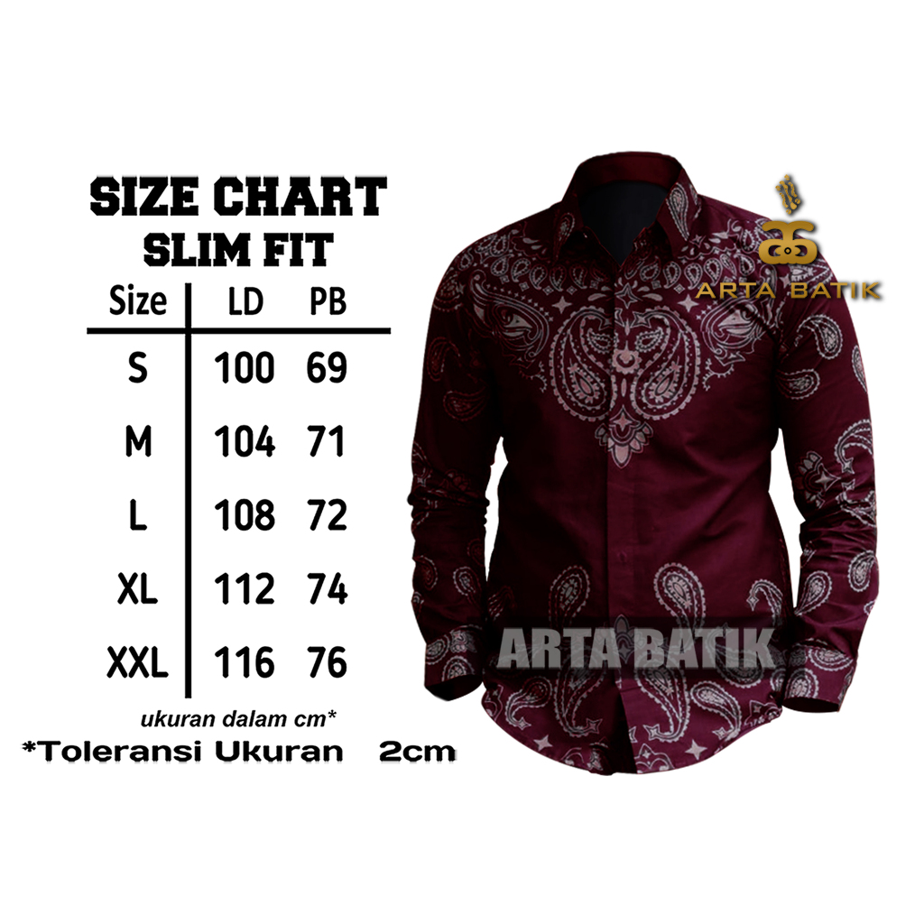 Damar Burgundy Maroon Baju Batik Pria Lengan Panjang Slimfit Katun Premium Terbaru Arta Galeri Solo