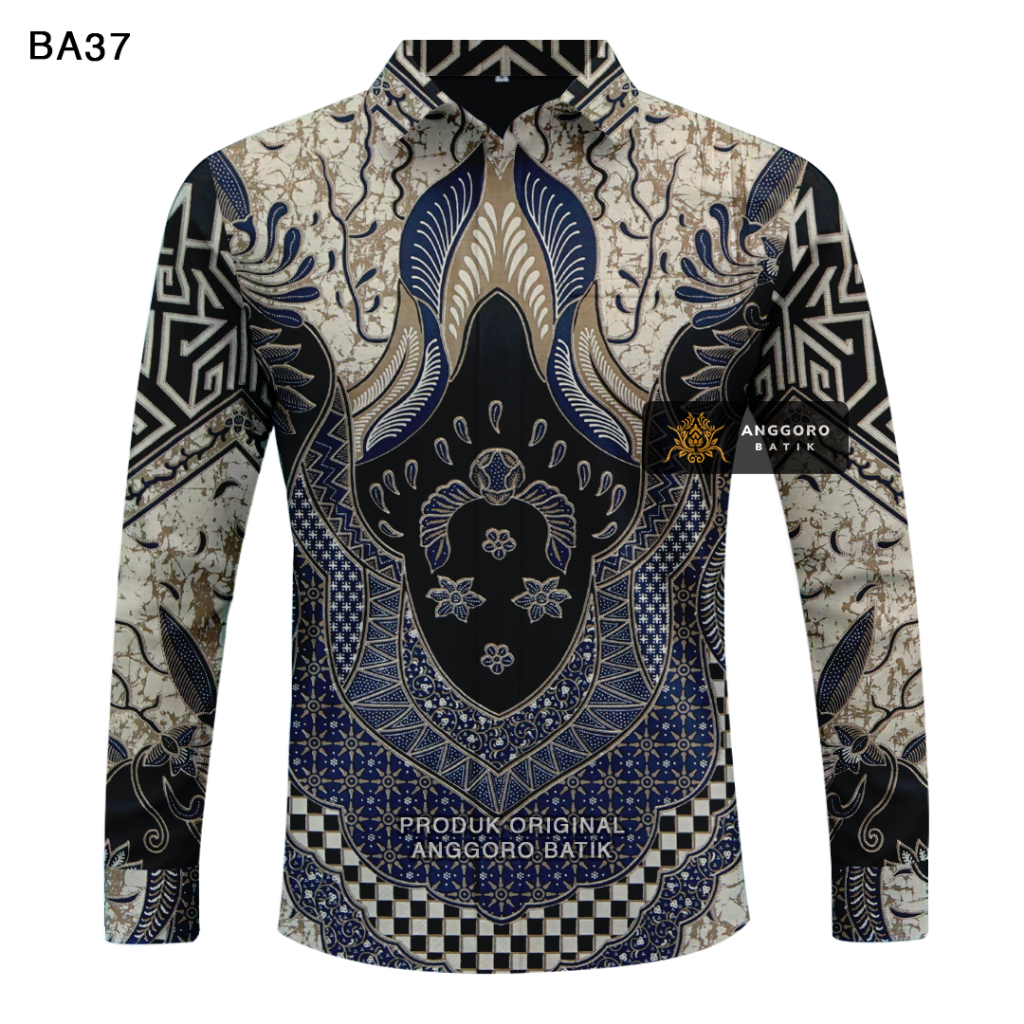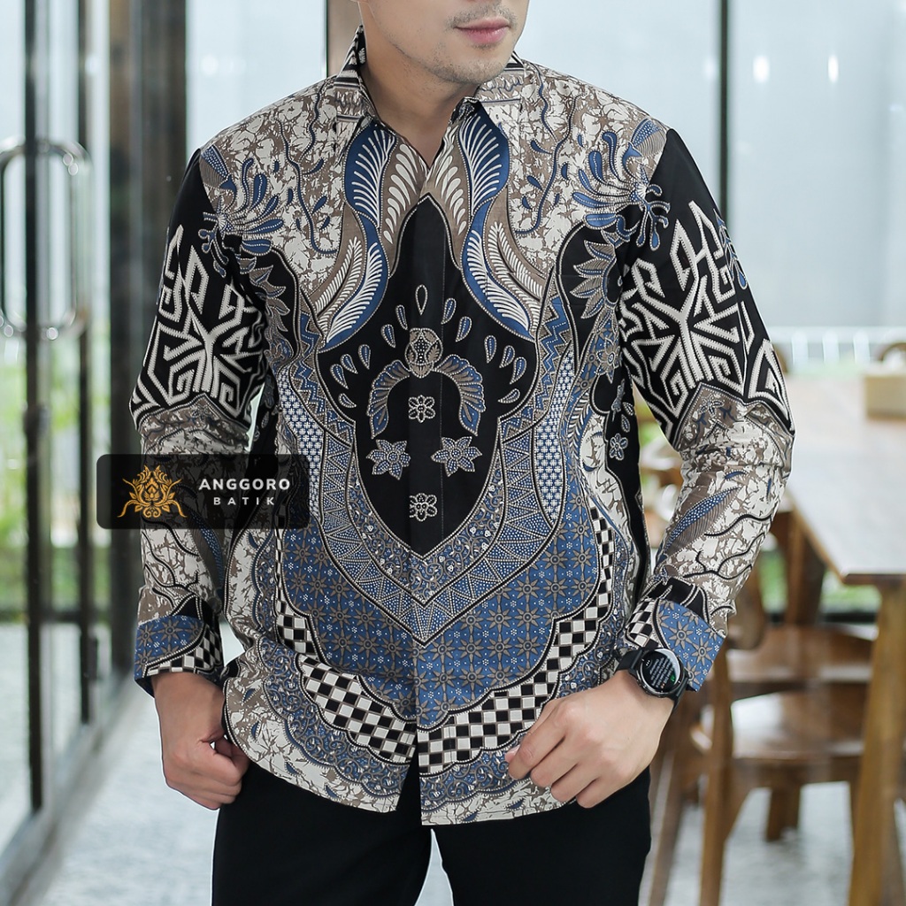 Kemeja Anggoro Batik Motif Satya Negara - Atasan Kemeja Baju Batik Pria Cowok Laki Laki Lengan Panjang Lapis Furing Slim