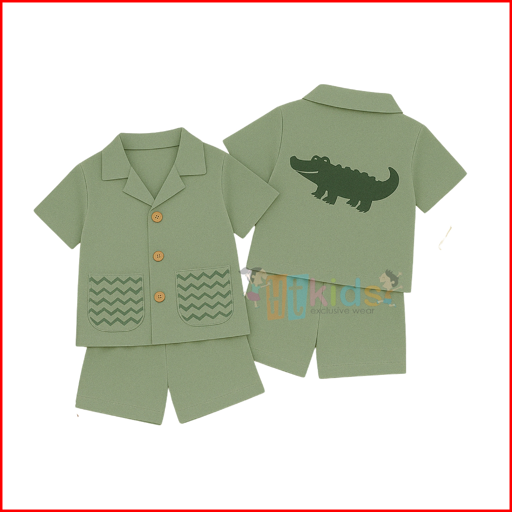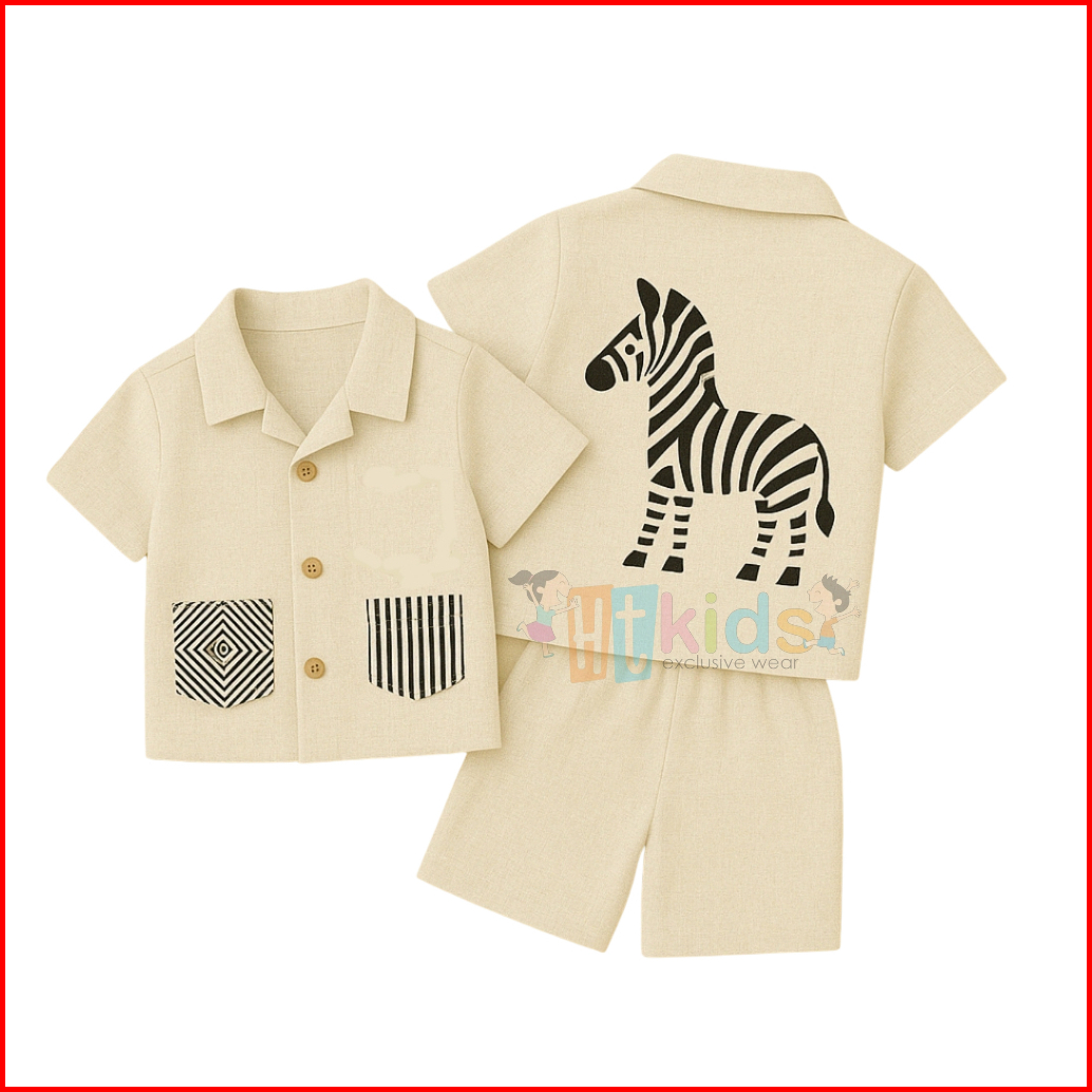 Htkids Baju Setelan Safari Anak Motif Binatang Lucu Zebra Singa Gajah Buaya St14 1 - 6 Tahun