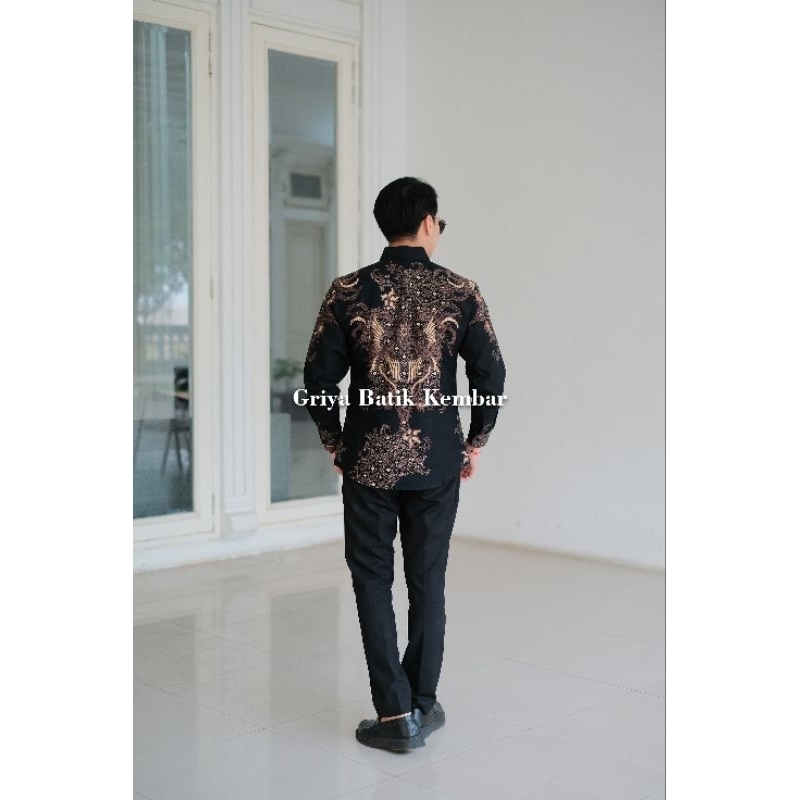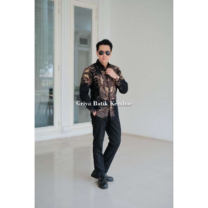 Baju Batik Pria Slimfit Lengan Panjang Motif Kencono Hitam Kain Katun Printing Lapisan Furing Nyaman dan Lembut tersedia