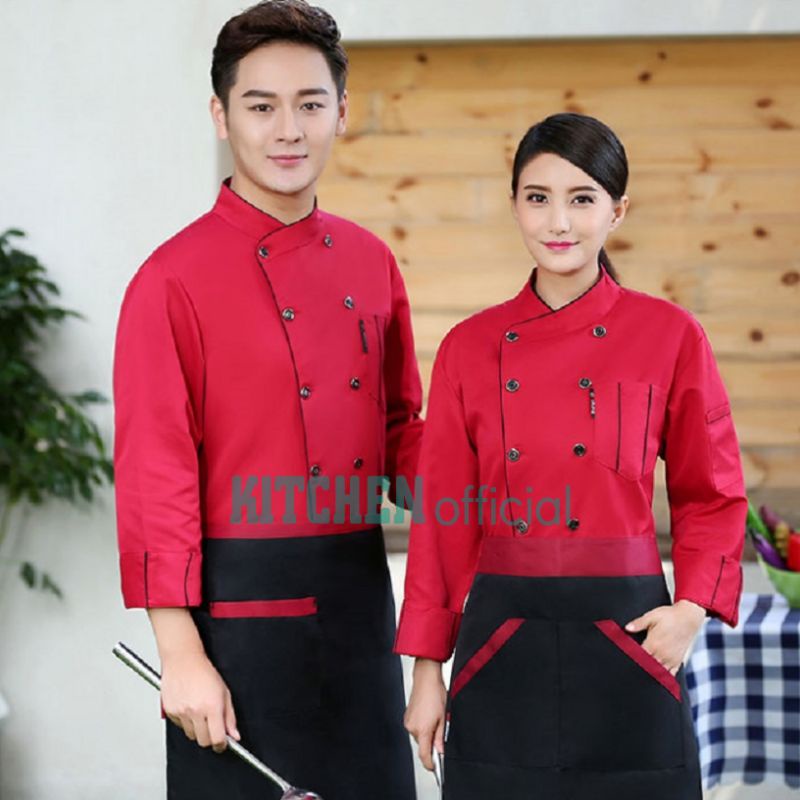 Kitchen.Official Baju Kameja Jacket Koki Chef Lengan Panjang Unisex Pria Wanita