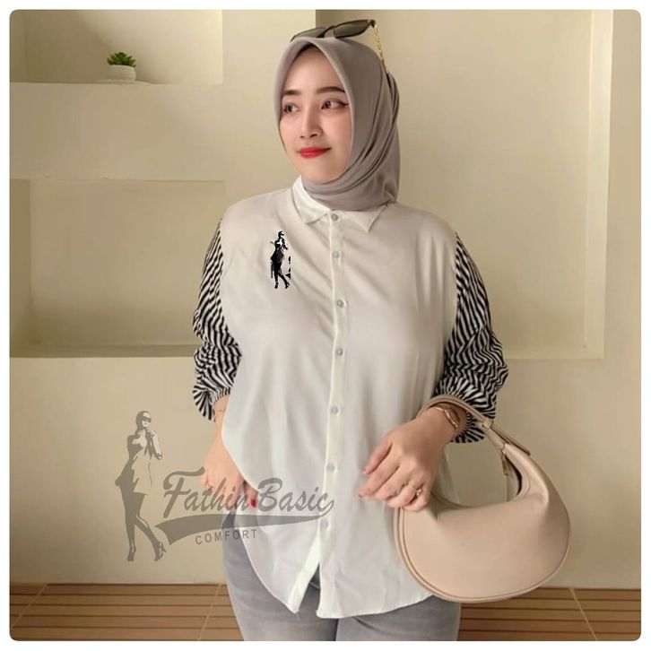 TIARA Blouse Kemeja Wanita Kombinasi Salur Rayon Twill M0DEel Terbaru Atasan Wanita Kekinian