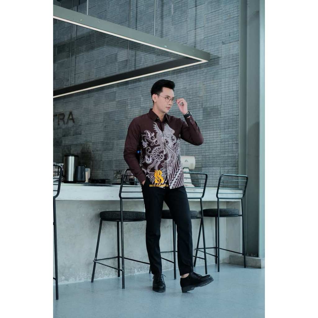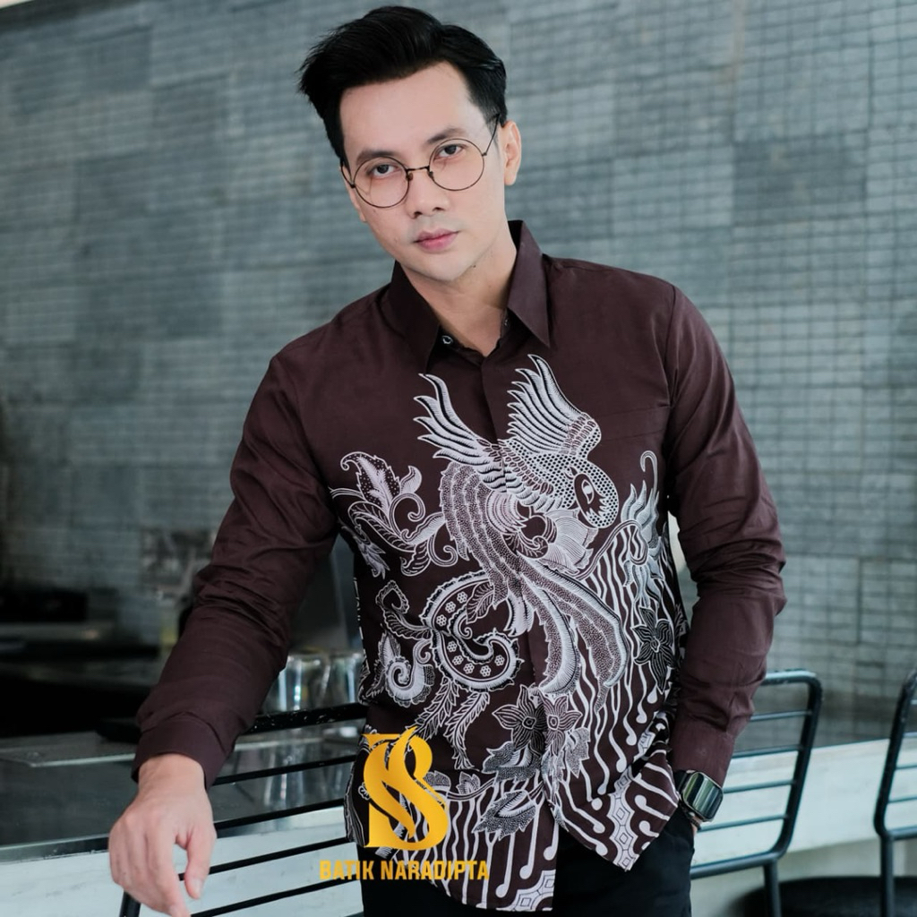 Ajisaka MAHOGANY Batik Naradipta kemeja slimfit baju kerja kantoran pria lengan panjang keren