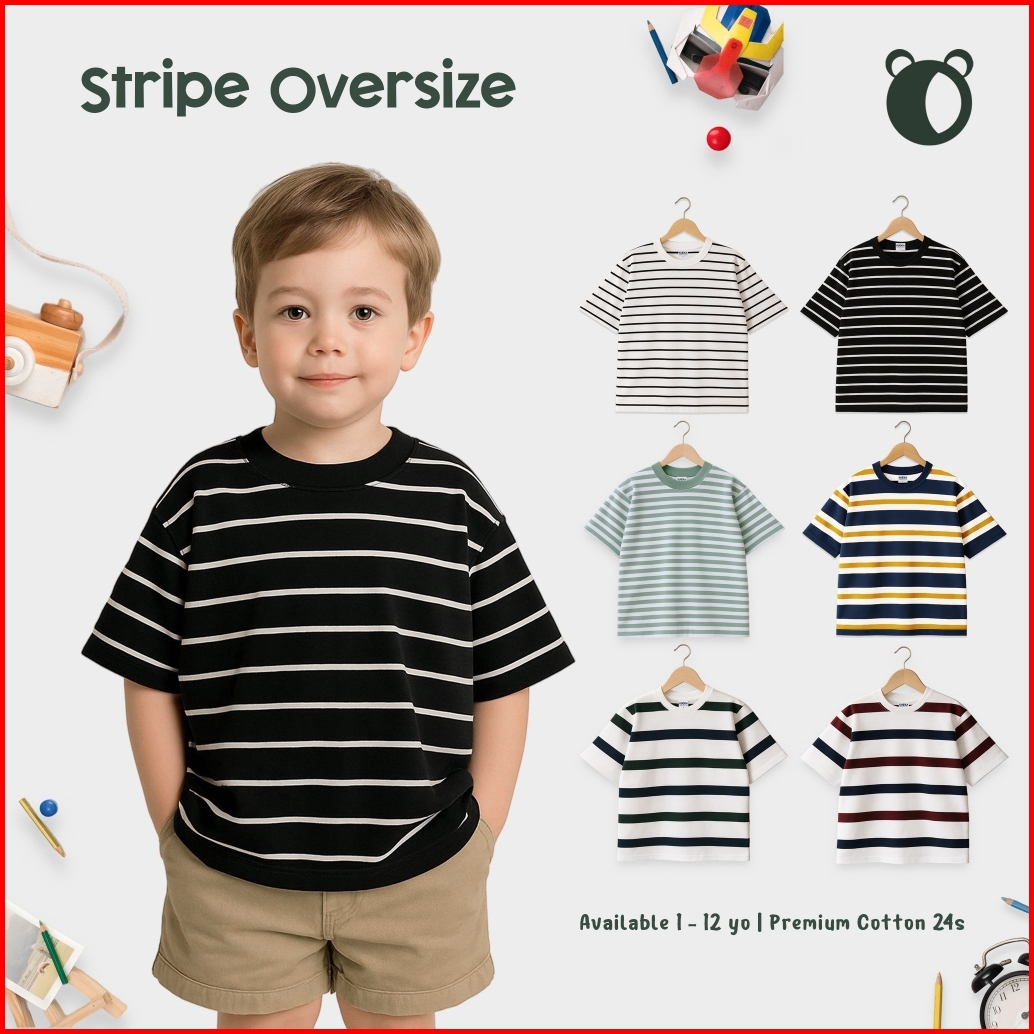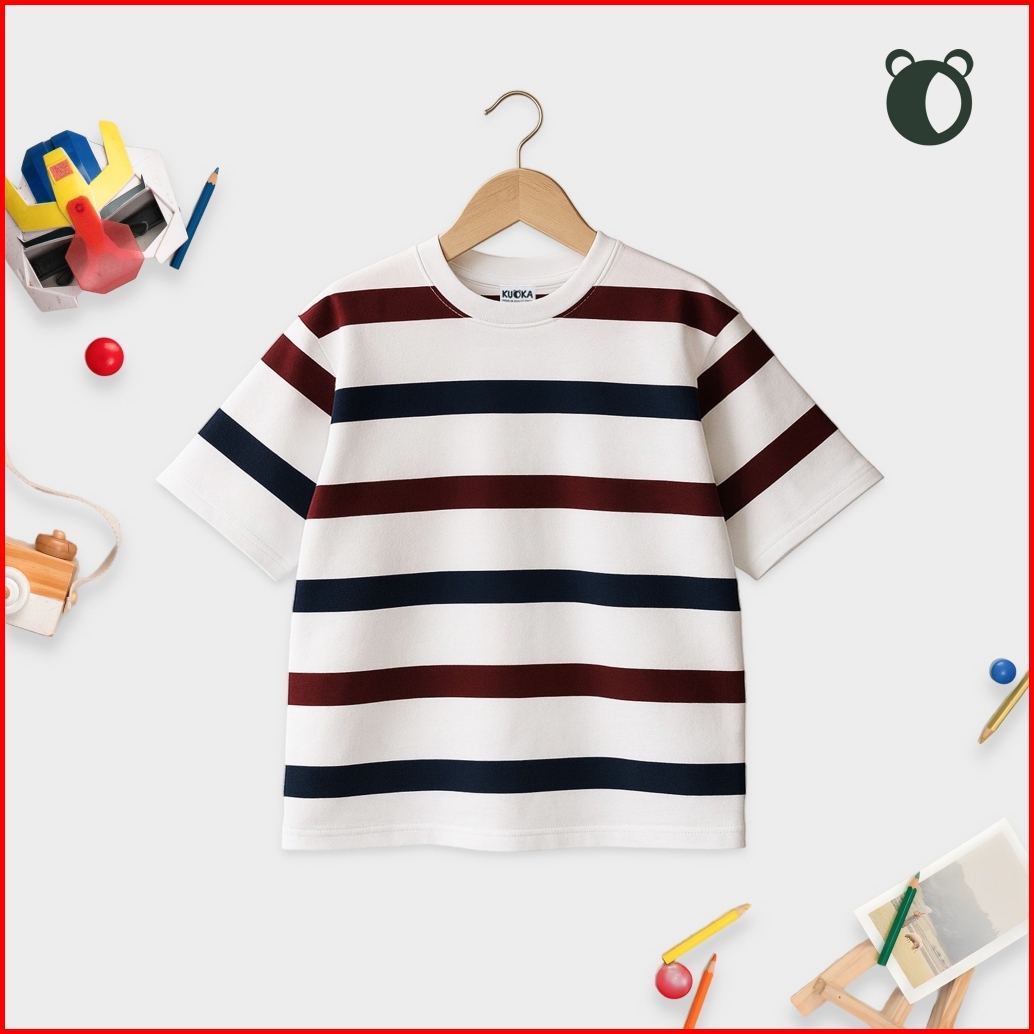 Kuokabasic Kaos Salur Anak Oversize Kaos Stripe Anak Unisex Baju Motif Garis Anak Premium 24s