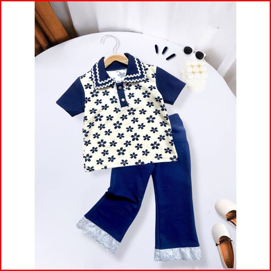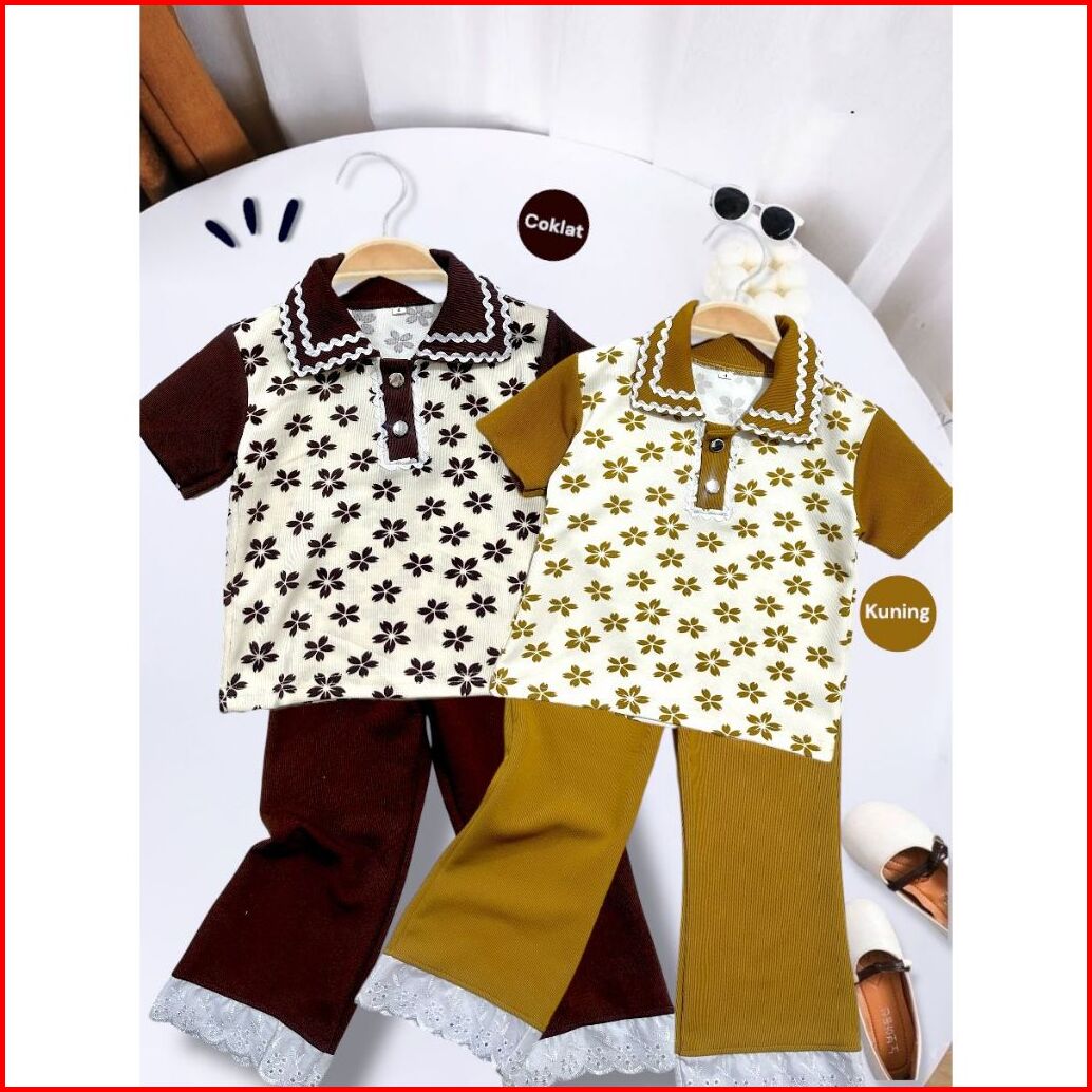 One Set Anak Perempuan Motif Bunga Bahan Knit Japan Linen Usia 1 Tahun Sampai 10 Tahun Model Baju Kerah