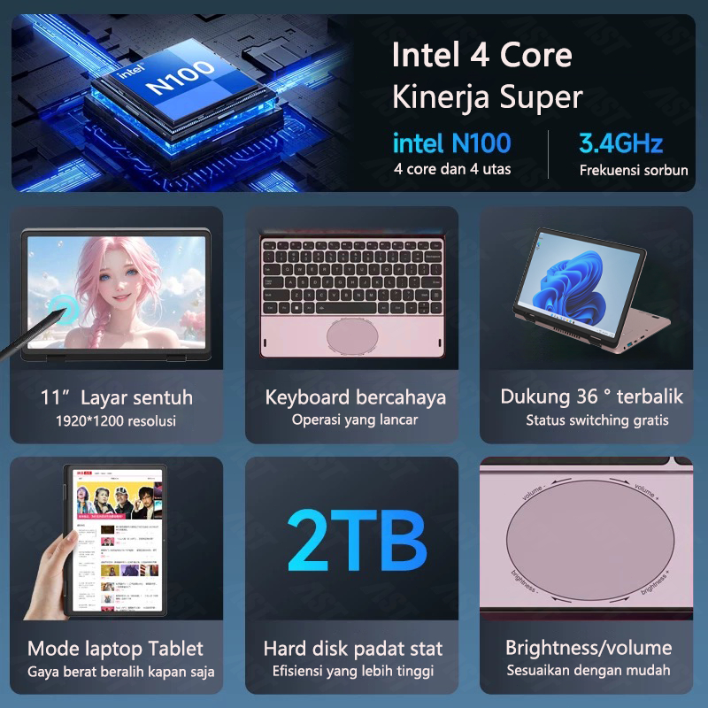 CNAST Laptop Touchscreen pink murah 11" Mini Ram16+512GB SSD 360° lipat Windows11&Office Garansi