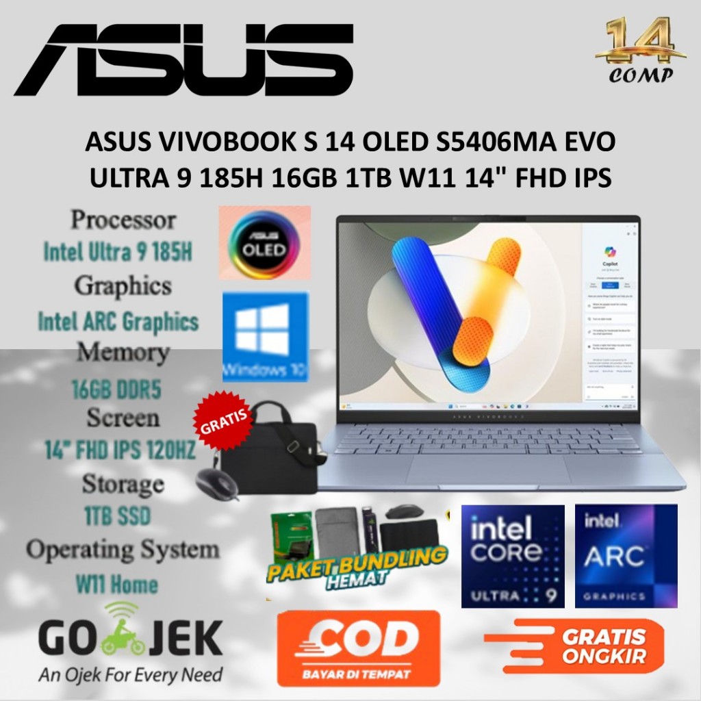 Asus Vivobook S14 OLED S5406MA Ultra 9 185H 16GB 1TB W11 14" WUXGA 120Hz