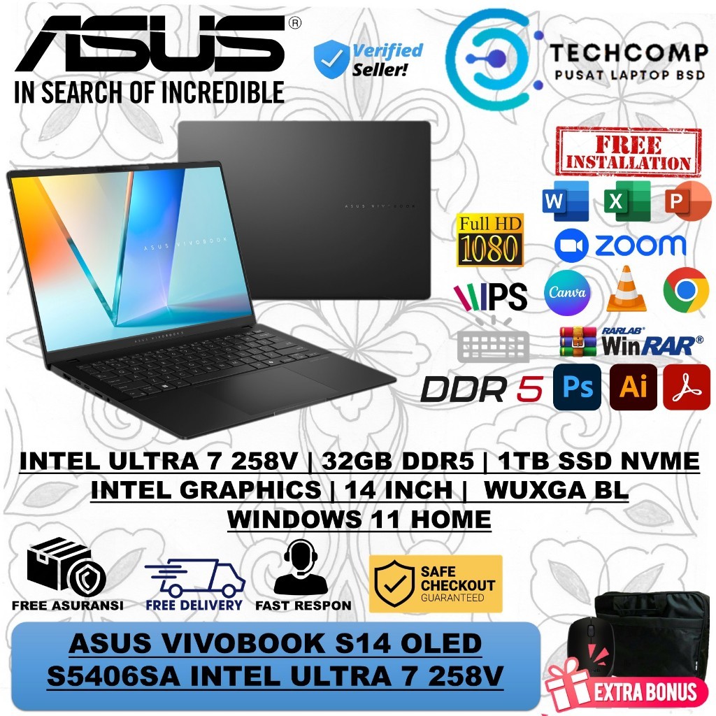 Laptop Asus Vivobook S14 OLED S5406SA Intel Ultra 7 258V Ram 32GB 2TB SSD 14.0" WUXGA Windows 11Home