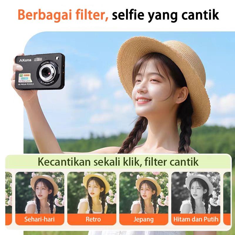 Akona Digicam 48MP Kamera Digital Pocket Layar LCD 2,7 Inci Digital Camera Mini Pembesaran 8X Anti-guncangan Yang Cerdas