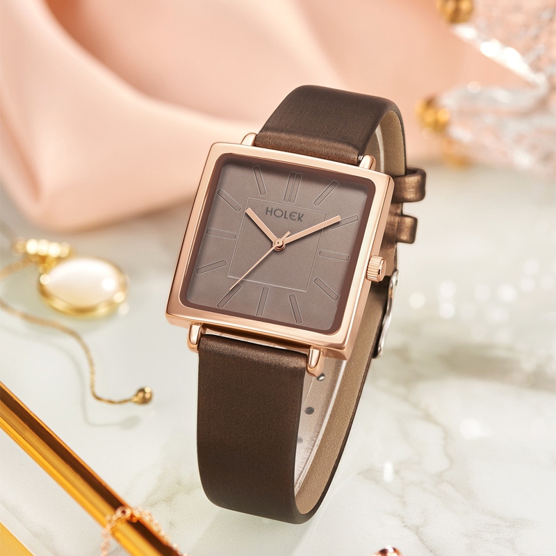 HOLEK 1690 Jam Tangan Wanita Jam Tangan Kuarsa Sabuk Modis Sederhana Persegi Retro