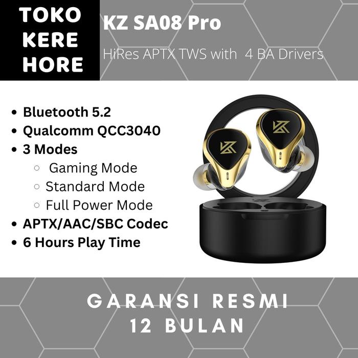 TWS KZ SA08 PRO HIFI 4 BA DRIVER APTX BLUETOOTH 5.2