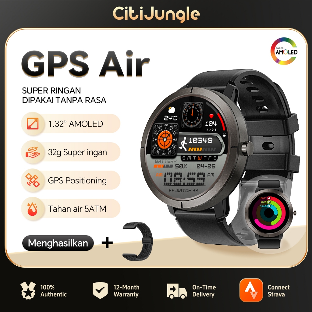 Citijungle GPS AIR Smartwatch GPS Multi Sistem Support Strava | Layar AMOLED 1,32” HD | Pemantauan Kesehatan Lengkap | T