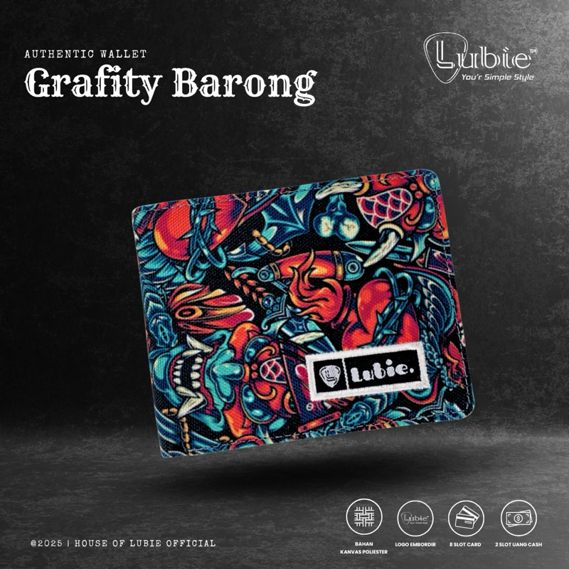 LUBIE Dompet Lipat Pria Wanita Dompet Anti Air Kanvas Polyester Graffity