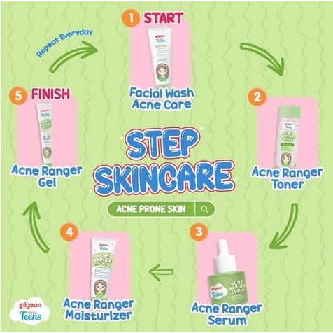 [Star] ❤ GB ❤ Pigeon Teens Paket Perawatan Muka Wajah Berjerawat 6 in 1 | Acne Ranger Full Power | Skincare Kulit Anak R