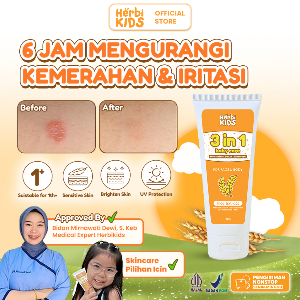 [Star] Herbikids - 3in1 Face And Body Lotion 100ml - Krim Pelembab dan Anti Iritasi - Uv Protection (BPOM)