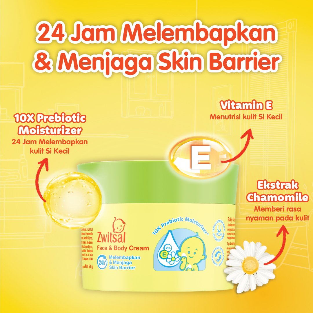 [Star] ZWITSAL Baby Face and Body Cream - 10X Prebiotic Moisturizer, Chamomile, Vit E 50 gr