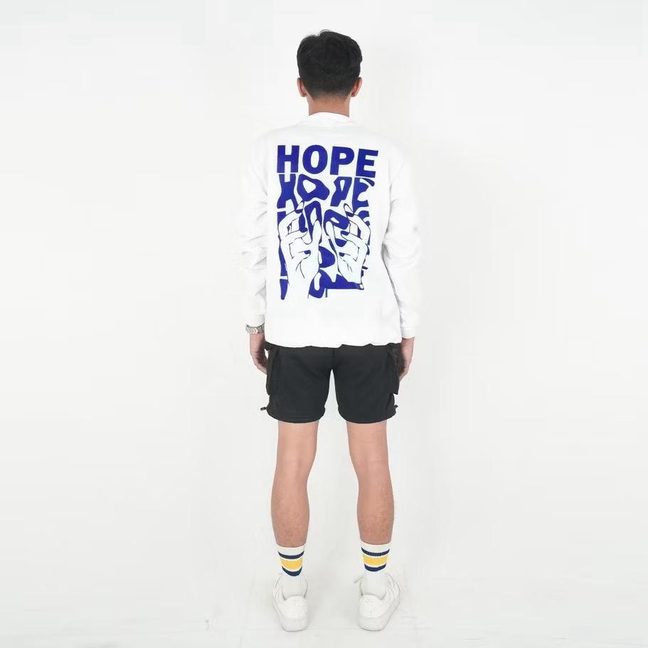 Vigooo - Crewneck Cowok Hope White Kaos Lengan Panjang Cowok Terbaru
