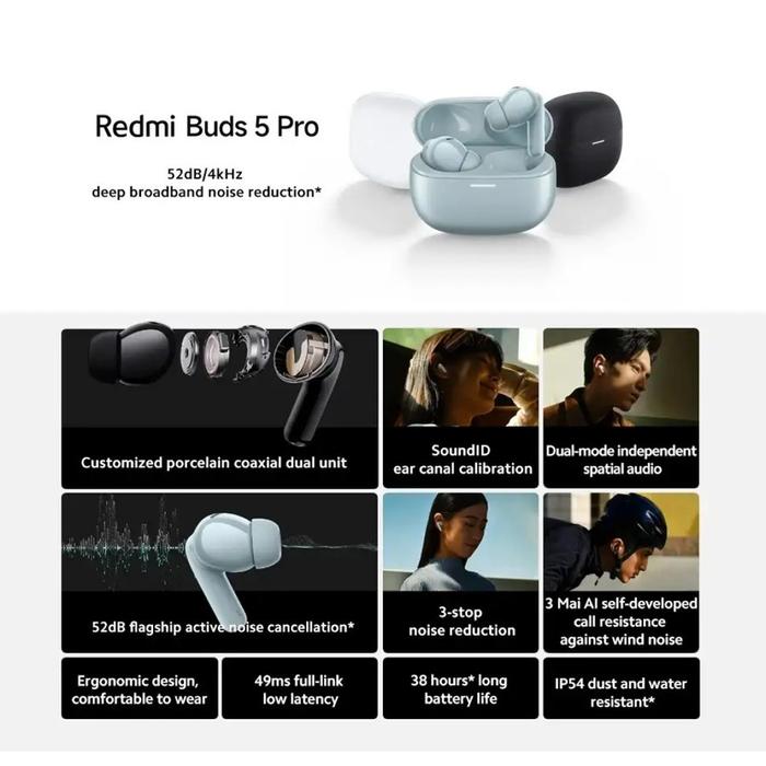 XIAOMI MI REDMI BUDS 5 PRO ANC TWS BLUETOOTH EARPHONE EARBUDS - MOONLIGHT WHITE