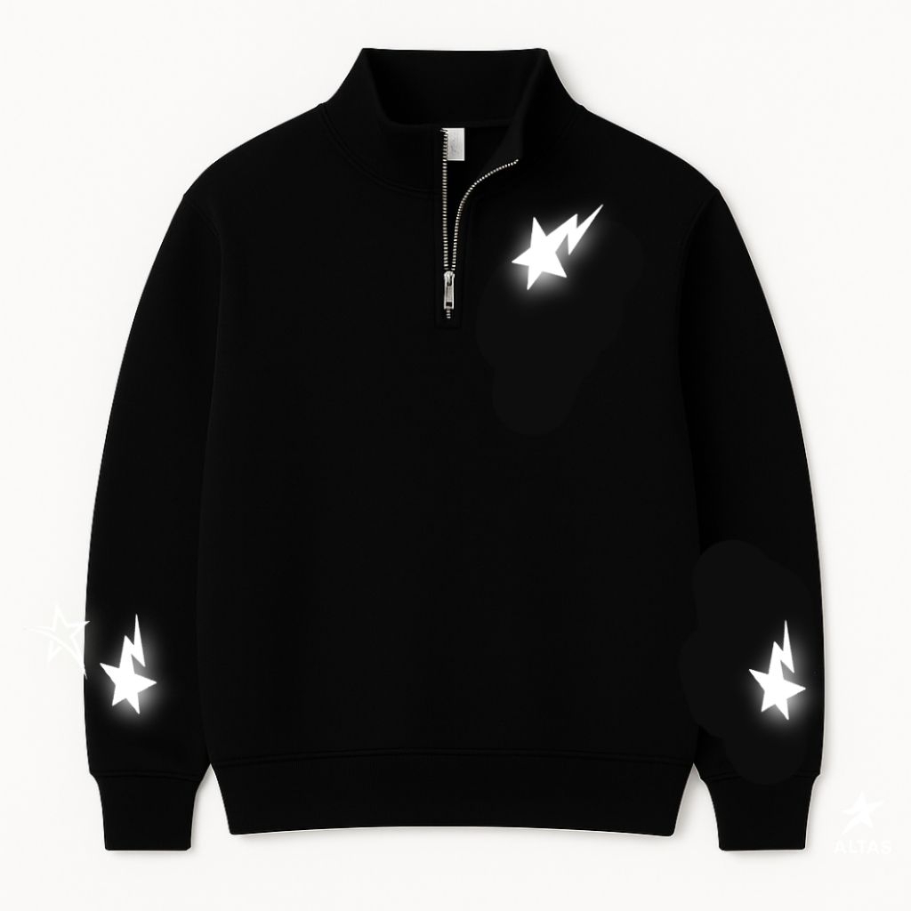 Altas Sweater nyala halfzipper bintang nyala reflektif hitam nyala trend pria wanita