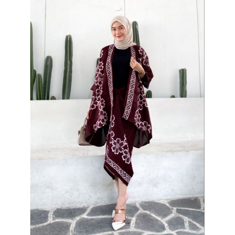 SET KEBAYA MODERN OUTFIT KONDANGAN SIMPEL ONE SET BATIK OUTER ROK LILIT KIMONO WANITA SETPRADA