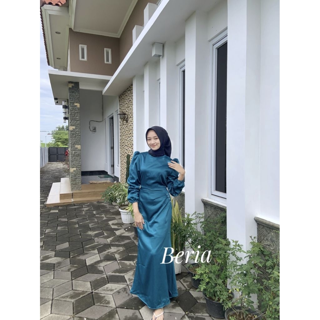 Elora Dress by Beria Satin silk Kondangan Lebaran Baju Muslim wanita Gamis Mermaid bridesmaid wisuda Emerald burgundy co