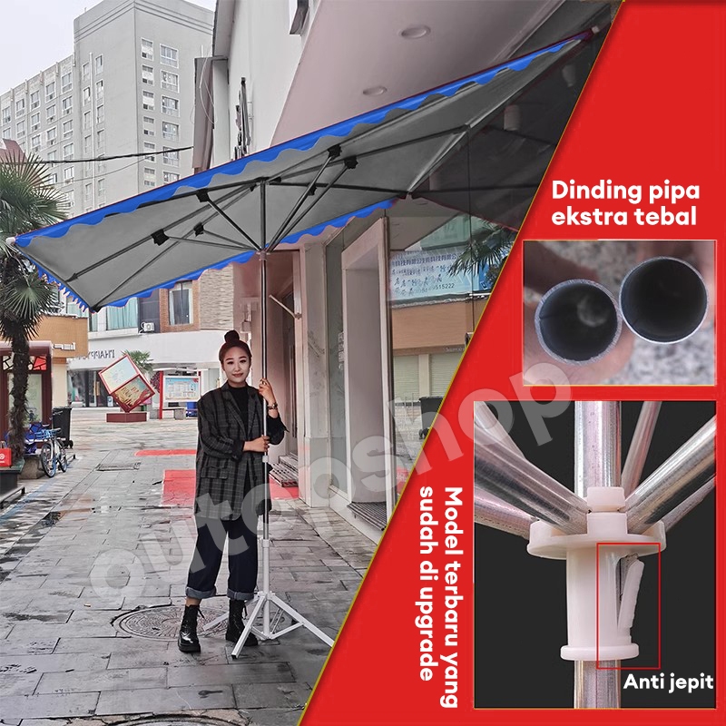 Kaonemall}Payung Kotak Outdoor Dapat Dimiringkan - Kanopi Lipat Kuat untuk Kios, Taman & Teras
