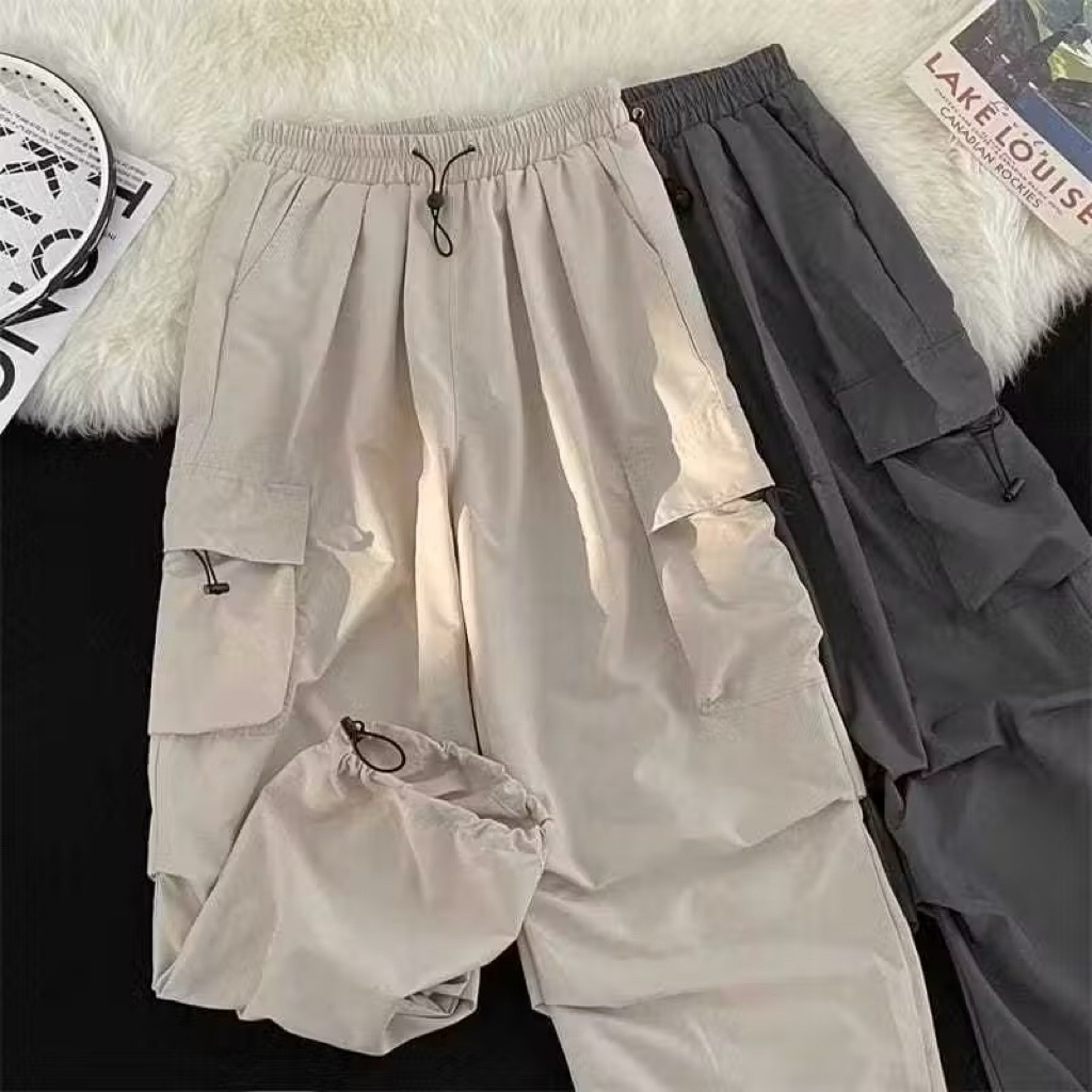 Celana Cargo Panjang Tali Serut Pria Uni Highwaist Premium-Bawahan Pria-Celana Gunung