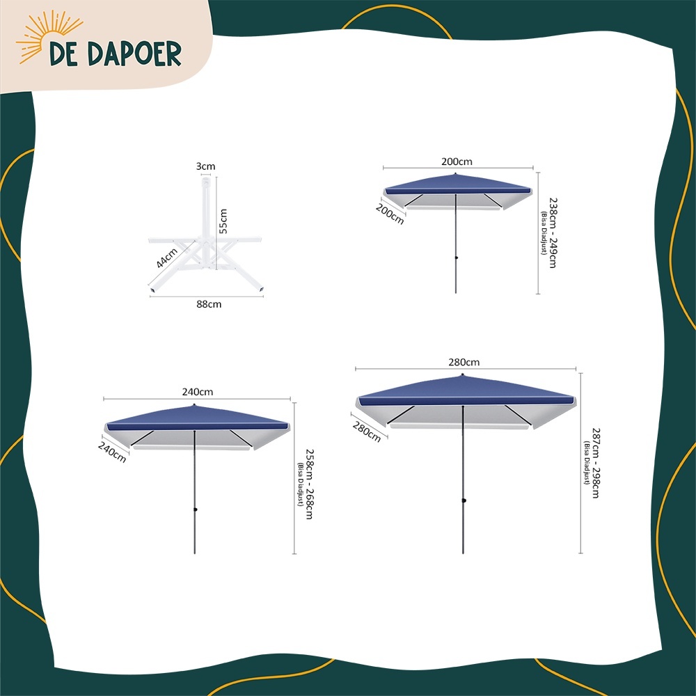 Payung Outdoor Tenda Persegi Jumbo 280 cm Jualan Taman Pantai Double Layer Tenda Caffe Anti UV