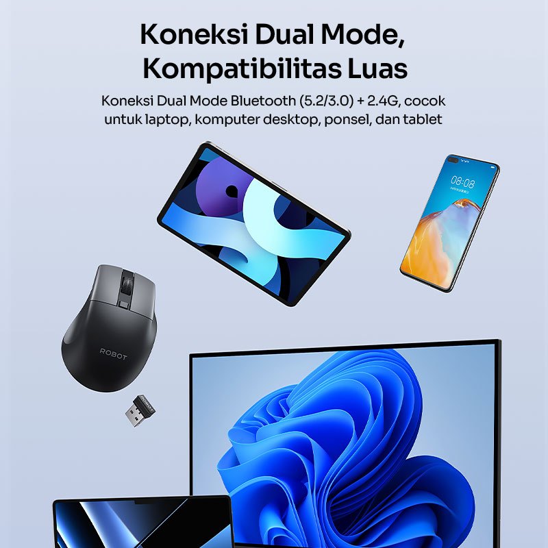 ROBOT Mouse Wireless Silent Click Receiver USB Bluetooth PC Laptop M355 Original - Garansi 1 Tahun