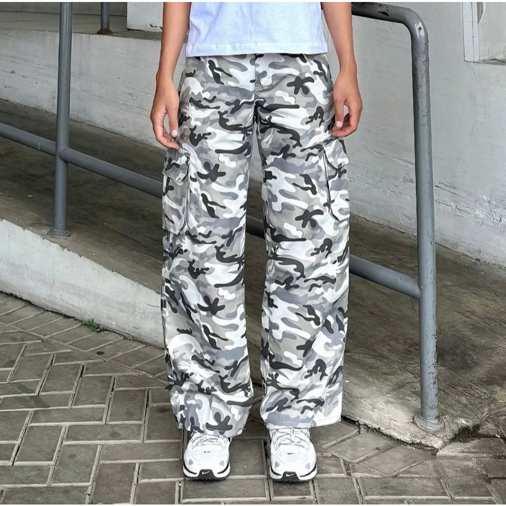 Celana Loreng Panjang Pria Cargo Camo Baggy Gombrong Skena / Celana Cargo Pants Pria
