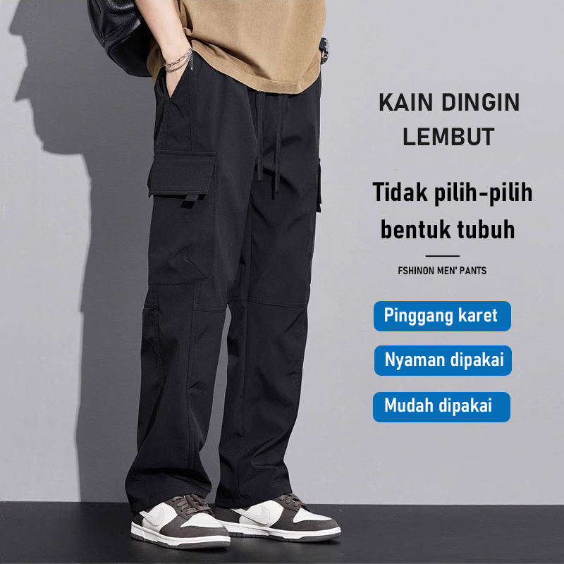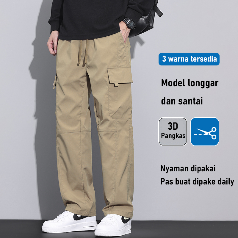 Suyboy Celana cargo panjang pria kulot sutra es dewasa baggy pants Korean style causal Celana kargo