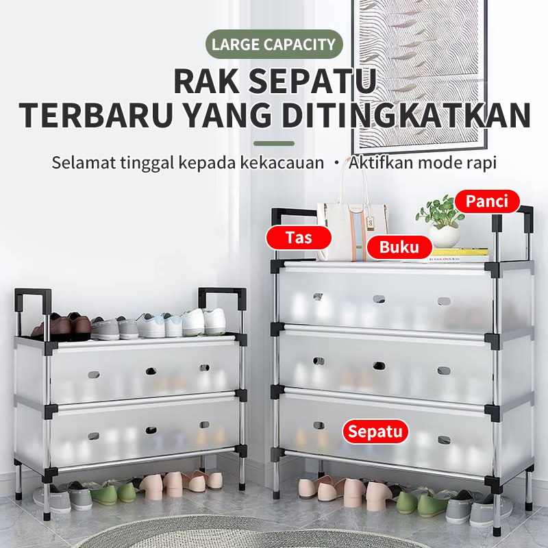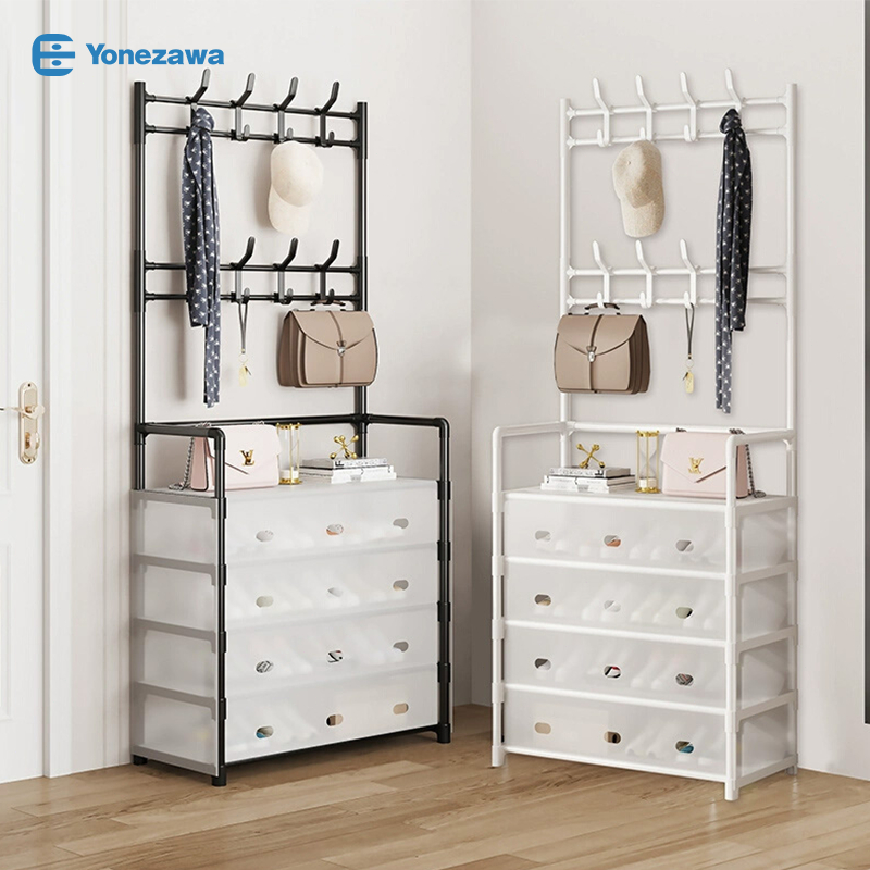 YONEZAWA Rak Sepatu Rak Gantung Baju Rak Tas Rak Topi Rak Susun Serbaguna Rak Penyimpanan Dengan Penutup Stand Hanger Ra