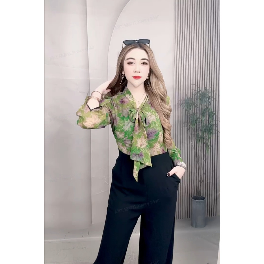 FADFAD | Jumpsuit Wanita Casual Retro | Atasan Motif Cetak Lengan Panjang + Bawahan Celana Longgar Nyaman | Desain Simpl