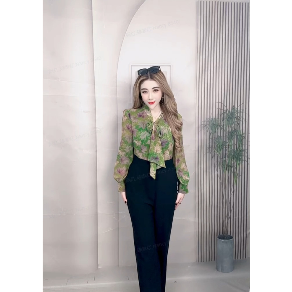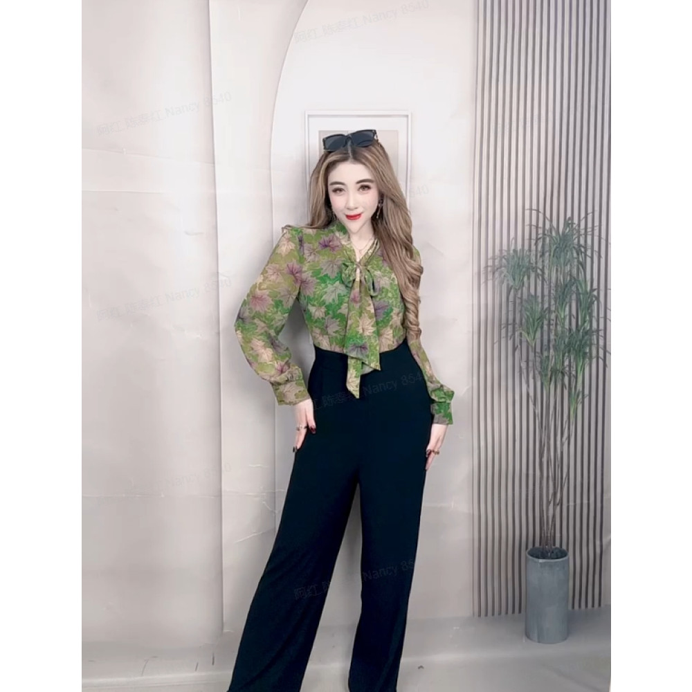 FADFAD Jumpsuit Wanita Casual - Atasan Motif Cetak Retro & Lengan Panjang | Bawahan Celana Longgar, Bahan Katun Premium,