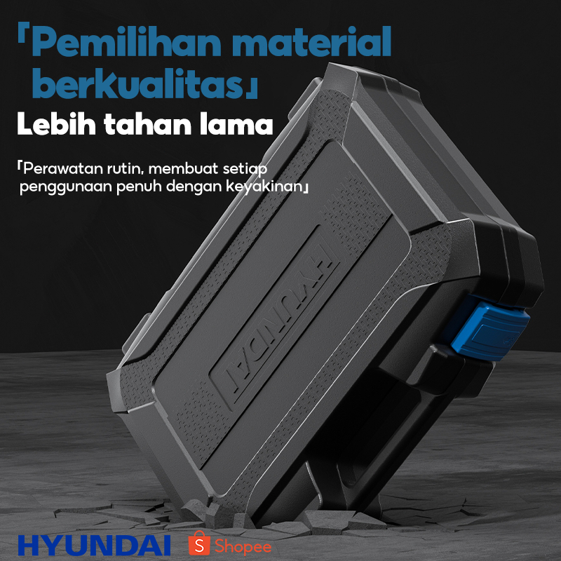 HYUNDAI Bor Listrik Set Lengkap Tool Box Alat Perkakas Baterai Cordless Tang Obeng Palu Kunci Pas Toolkit 55Set Pertukan