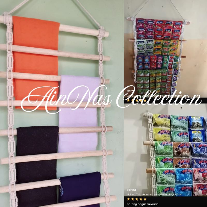 Rak Kayu Gantungan Hijab Aesthetic / Tempat Penyimpanan / Ladder Hanger Tangga Dispay Warung