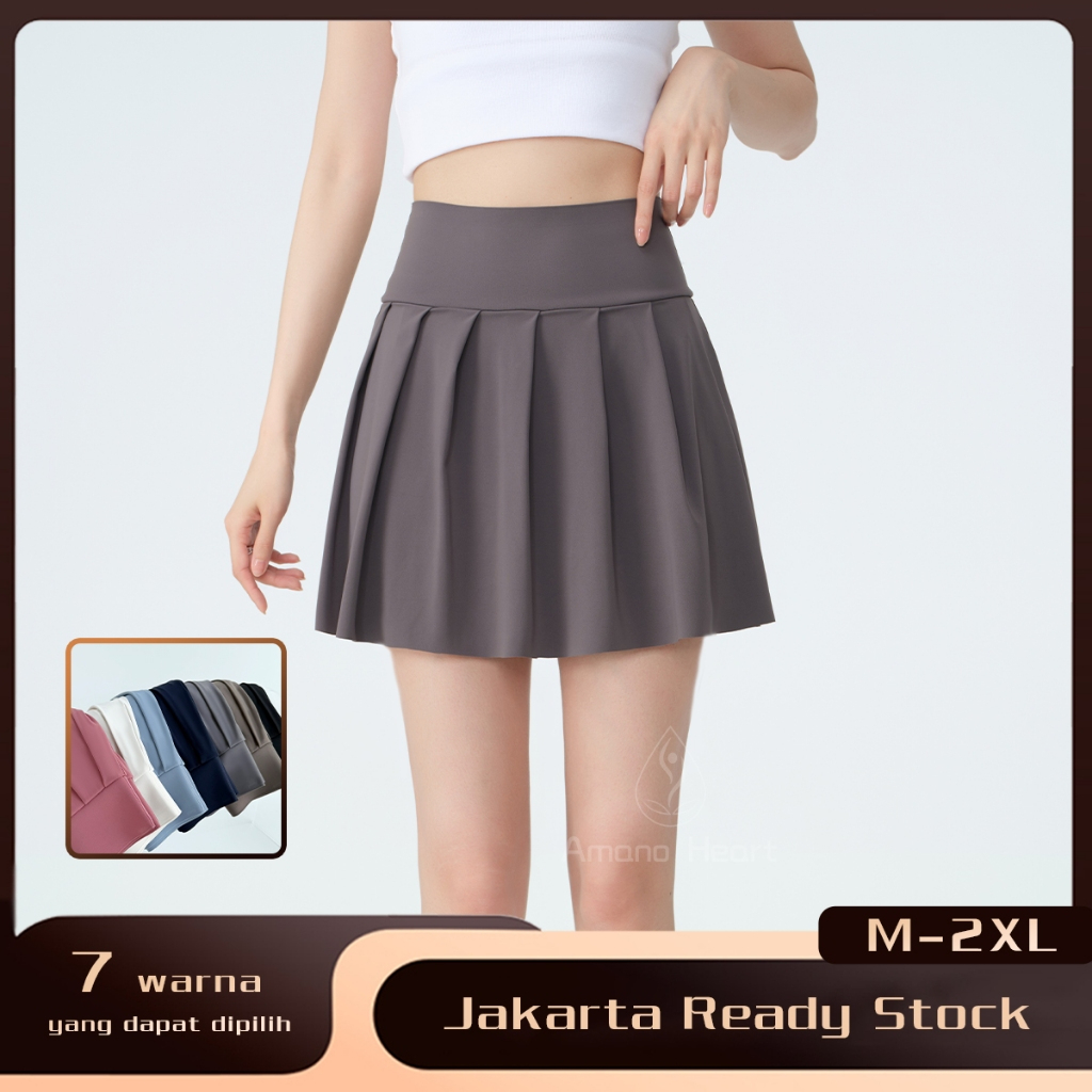 【Amanoheart】 2 in 1 kantong Rok Tenis Badminton Celana Skirt Wanita Dua Lapis Gym Tennis Skort Olahraga Pendek Tidak Mal